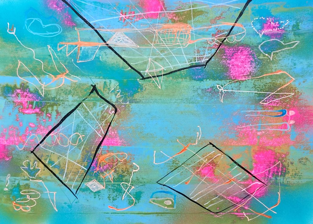Acrylic, spray , inks , markers on paper 180 gsm.  2025