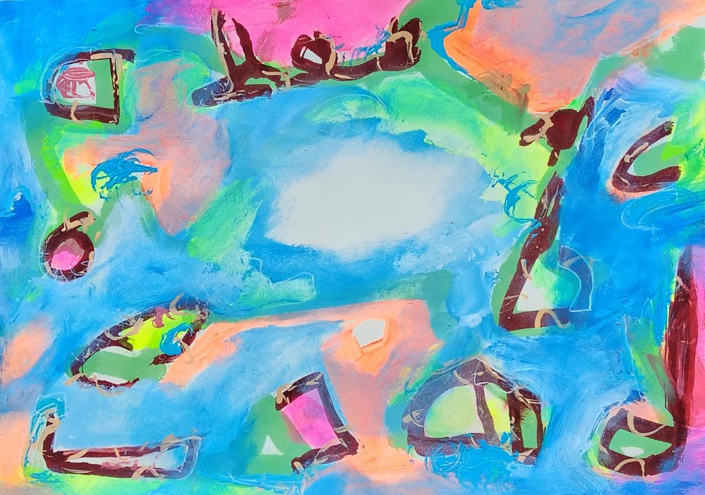 Acrylic,làtex, inks,markers on paper 180gsm. 2025