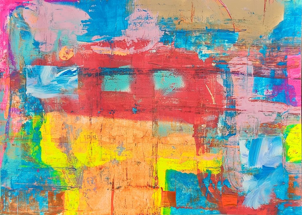 Acrylic, spray, inks , marker on paper 180 gsm.  2025