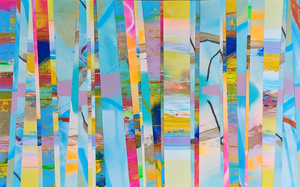 180 gsm paper painted with mixed media, cut out and mounted on an adhesive backing.2025 ( does not include frame )