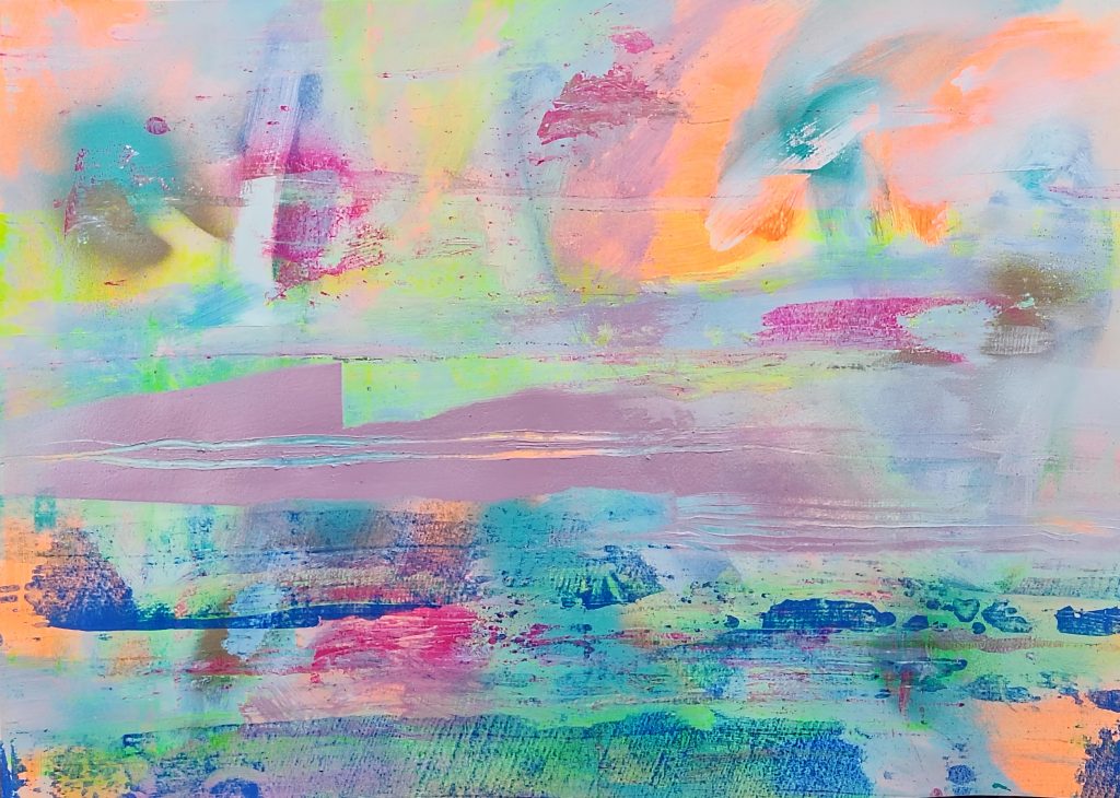 Acrylic, spray on paper 180gsm.  2025